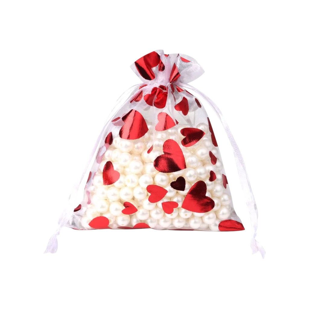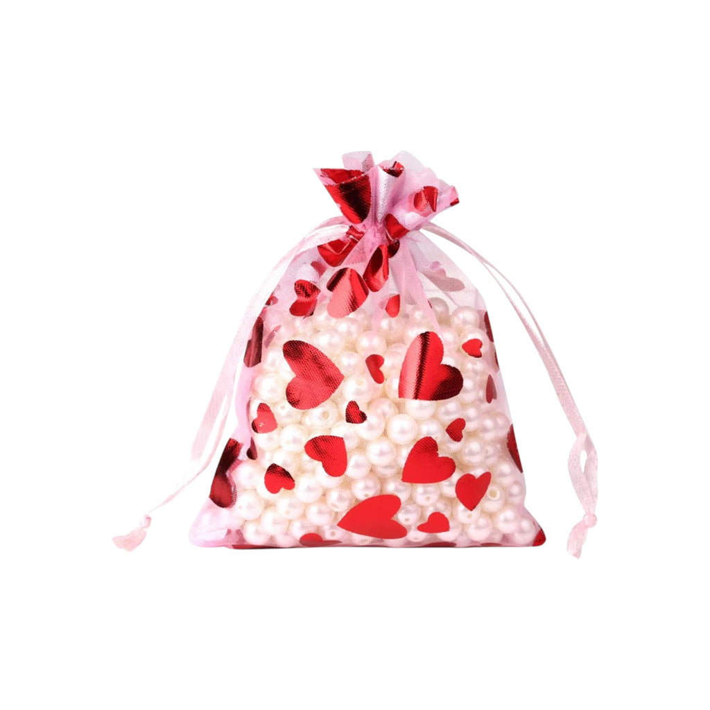 🏷️ 25 pcs Organza Drawstring Pouch Bags for Jewellery - Hearts (10cm x 12cm)