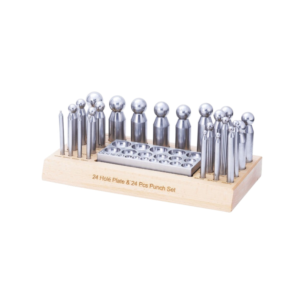 πŸ†• Doming Punch Set of 24 + Flat Doming Block on Wooden Stand