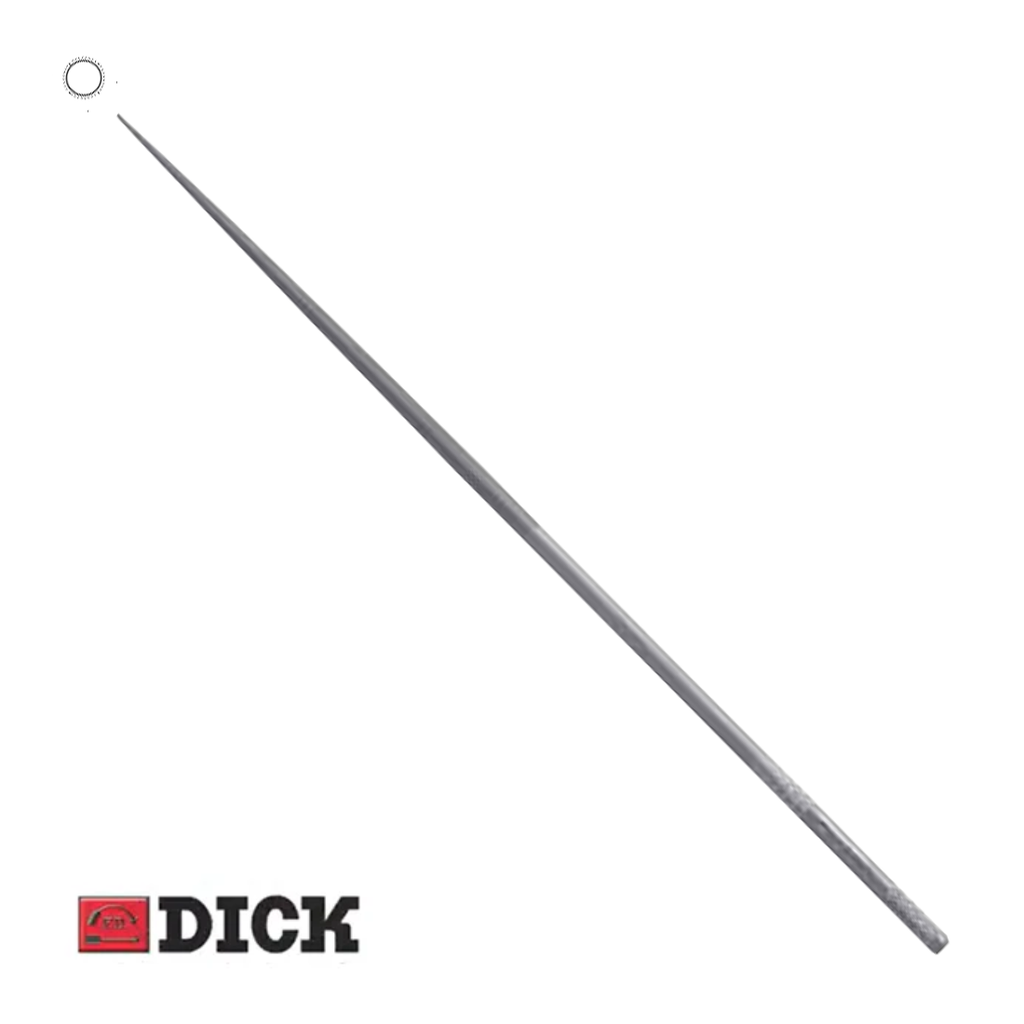 DICK Needle files are recommended for steel, steel alloys, soft metals and finishing work. These thin and pointed files have a round handle, sharp edges and points. Length = Total length