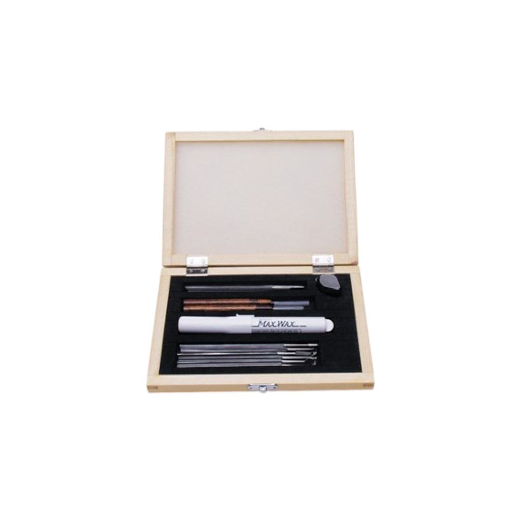 This all inclusive 13 piece kit comes in a smart wooden box to keep tools at hand. This set is comprised of our best and most popular wax tools. Virtually everything one needs to design and finish wax models or patterns.
