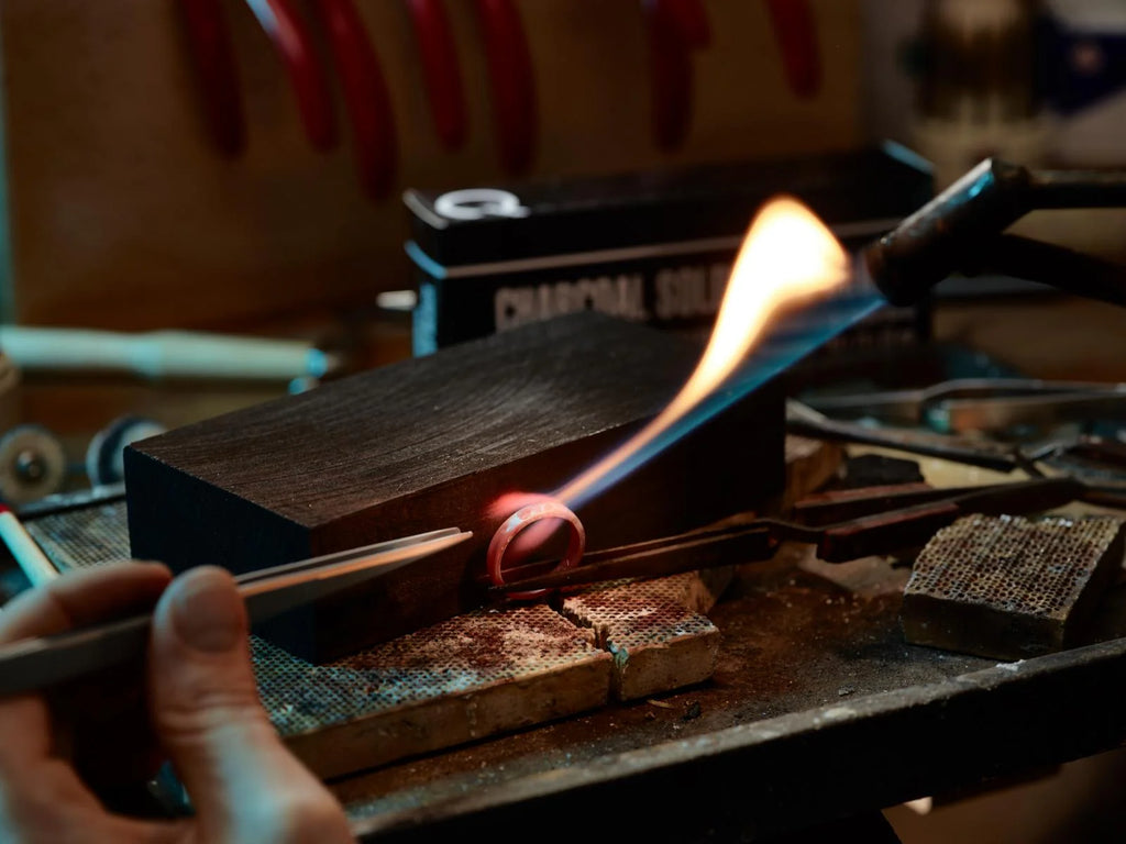 Soldering block made from pressed charcoal for goldsmith work. Because the block is made of pressed charcoal, it can retain heat for a longer period of time and has a longer lifespan.